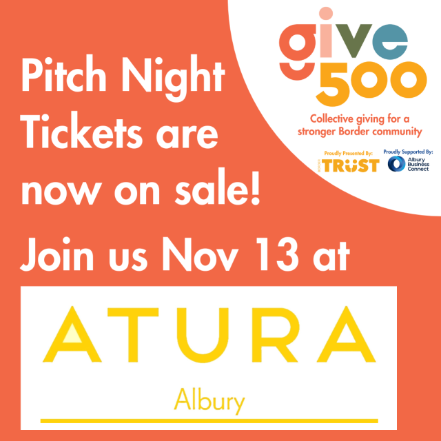 We’re so excited to announce that our friends at Atura Albury will once again host this year’s Give500 Pitch Night, an evening that celebrates local giving, big ideas and community spirit. 💛